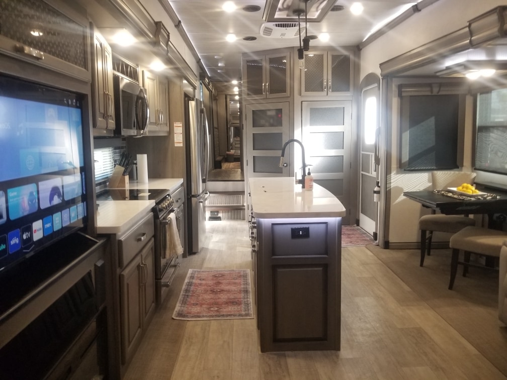 ¡Esta HERMOSA autocaravana nueva está disponible por noche (2 noches como mínimo) para estadías largas semanales y mensuales! Popular entre los viajeros profesionales que buscan un gran lugar para disfrutar después de un largo día de trabajo. CARGADO con servicios y listos para ti. Capacidad para 3 personas: cuenta con una cama tamaño king y un refrigerador de tamaño completo. ¡Sofás de cuero y enormes televisores de pantalla plana! El tocador doble en el baño proporciona espacio adicional o tiene capacidad para un huésped adicional. ¡$ave y reserva mensualmente!