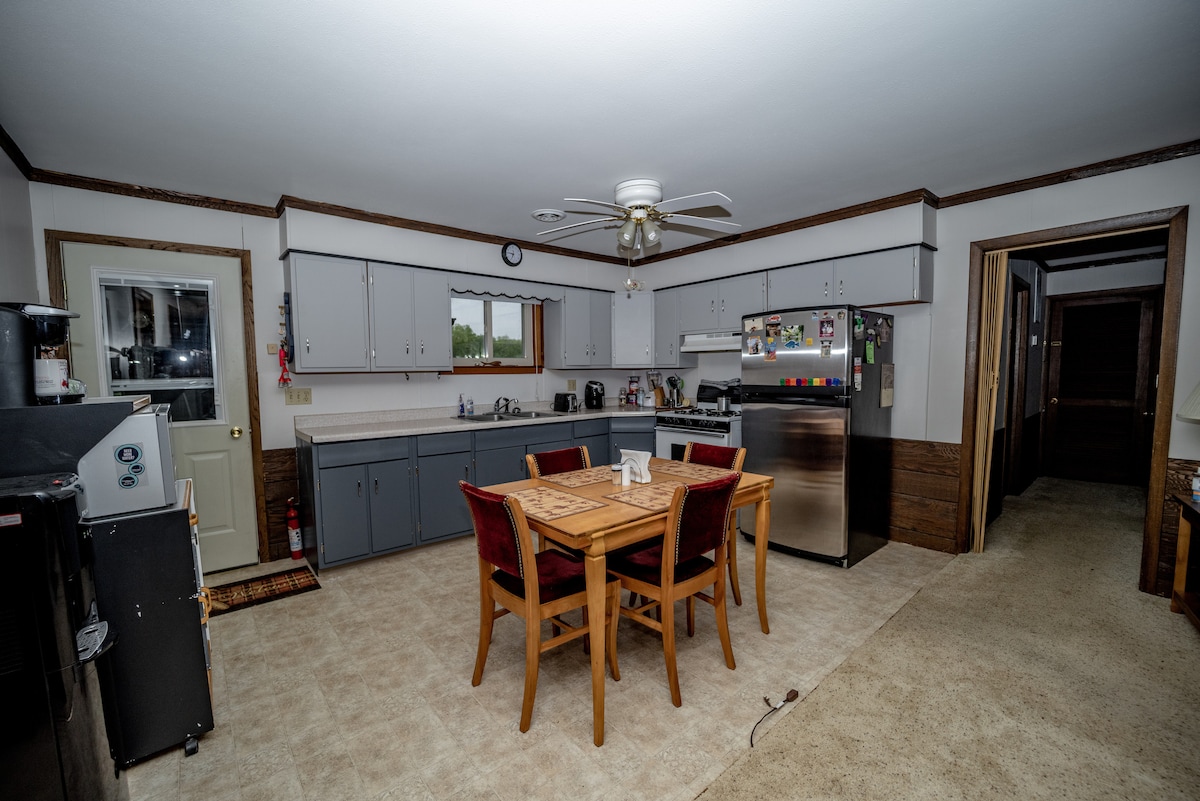 Casa de 2 dormitorios con sala de estar y comedor, cocina con electrodomésticos, lavadero y gran patio trasero. (Apto para niños) La tienda de comestibles, la gasolinera y los restaurantes están a menos de una milla de distancia. (A poca distancia a pie) Barrio grande y limpio. A solo una milla del parque Menominee, el estadio y otros destinos que quizás quieras explorar.