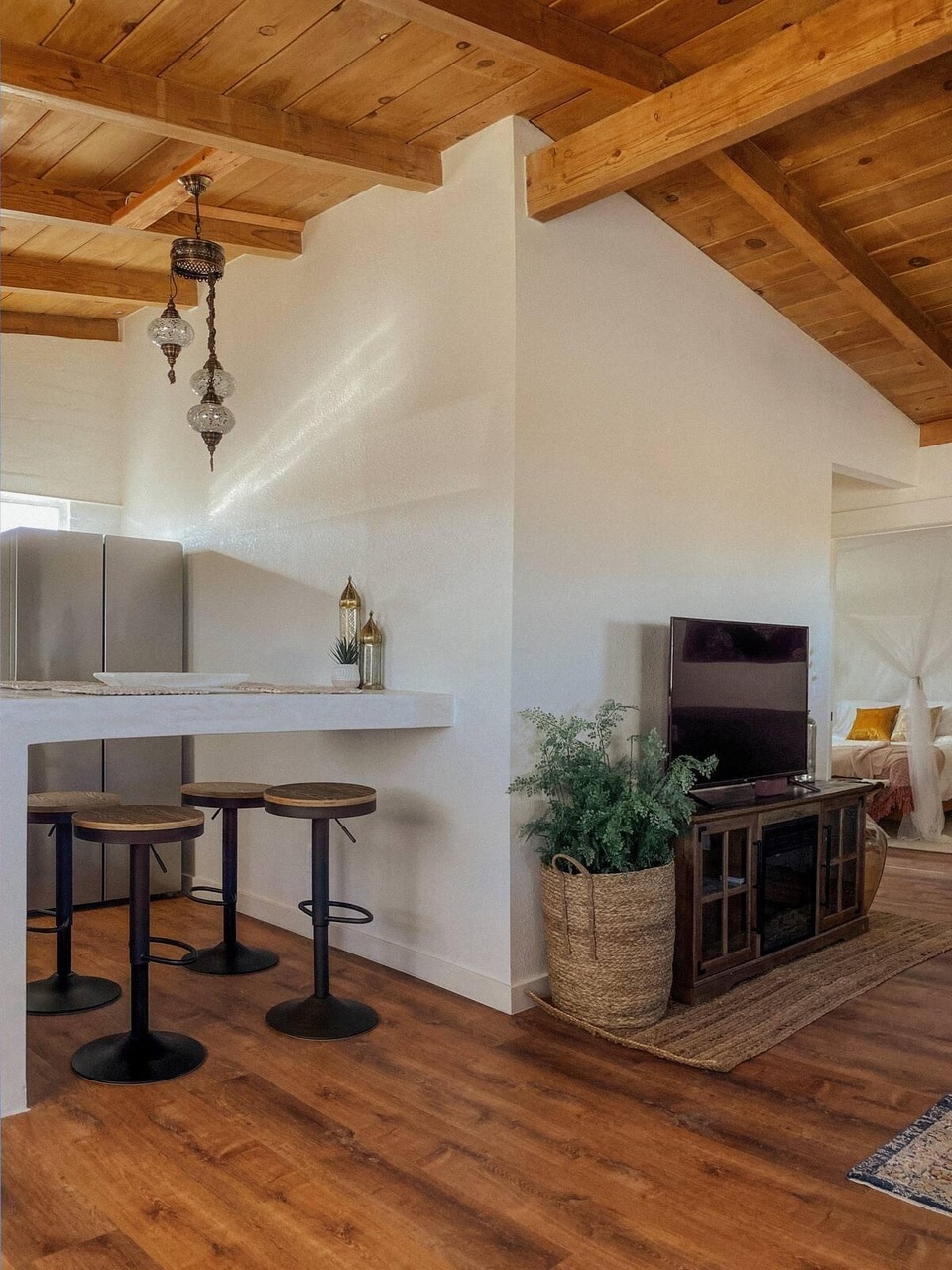 Escápate a este tranquilo refugio de 2,5 acres, con una decoración bohemia y elegante. Relájate en la gran bañera con patas, observa las estrellas desde la torre de observación de estrellas o relájate en el jacuzzi bajo las estrellas. Disfruta de la fogata y la piscina de vaquero, rodeado de tranquilidad y naturaleza. La propiedad ofrece increíbles vistas a las estrellas en noches despejadas, vistas despejadas a las montañas durante el día y preciosas puestas de sol al final de la tarde, lo que la convierte en la escapada perfecta para la paz, la tranquilidad y la reconexión con la belleza del universo.