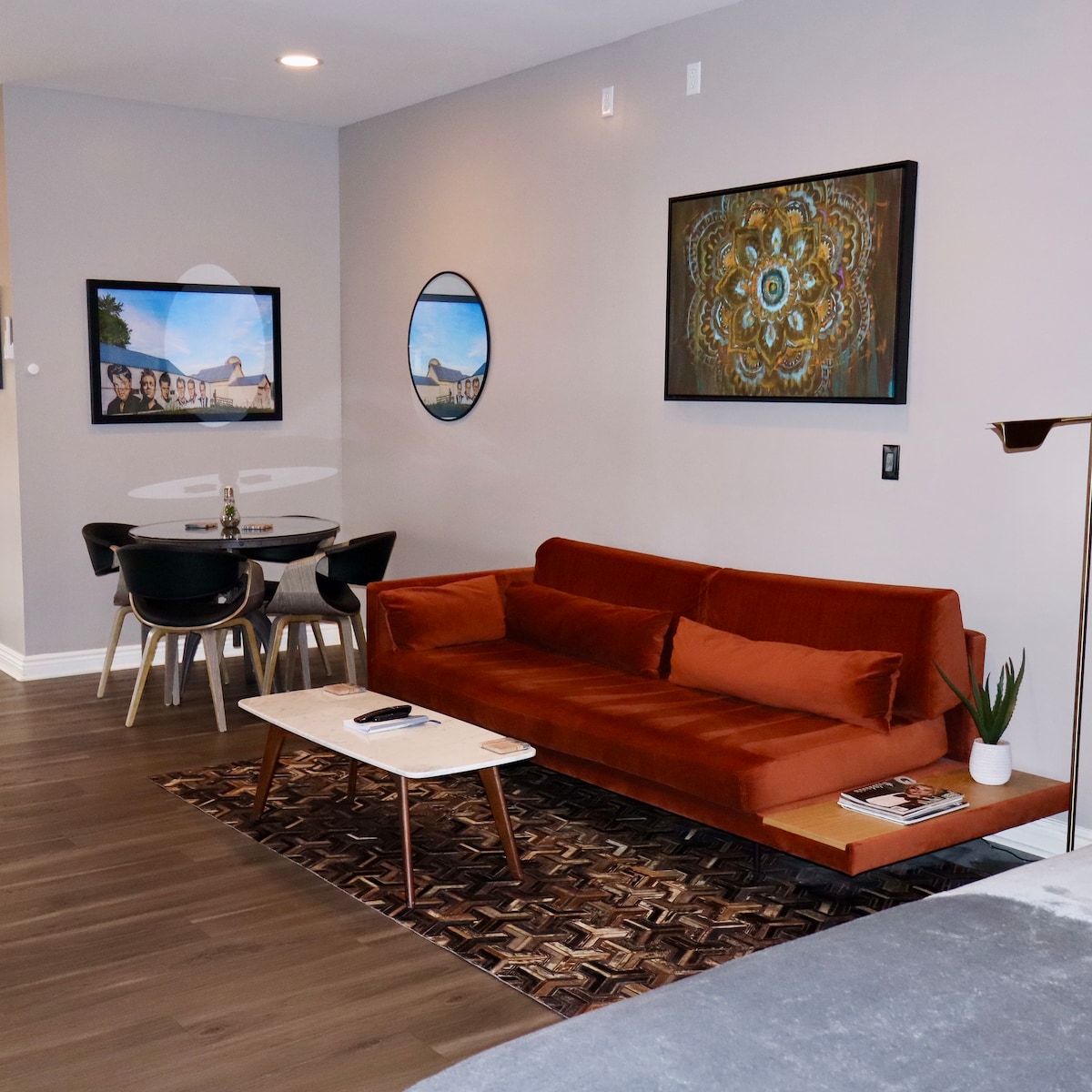 Luxury loft studio w/elevator and parking right on Main St- Home of Applefest, wineries & farmers markets. Walk to all the great restaurants & shops. Skiing nearby! Steam shower, Zero Gravity adjustable bed w/ massage. Designer kitchen, Kardiel velvet sofa /sleeper, Electric fireplace, 60” HD SmartTV. Cozy window seating w/views perfect for morning coffee! Keurig, coffee, tea, & bottled water provided. Relax & indulge- leave the cleaning to us at check out!