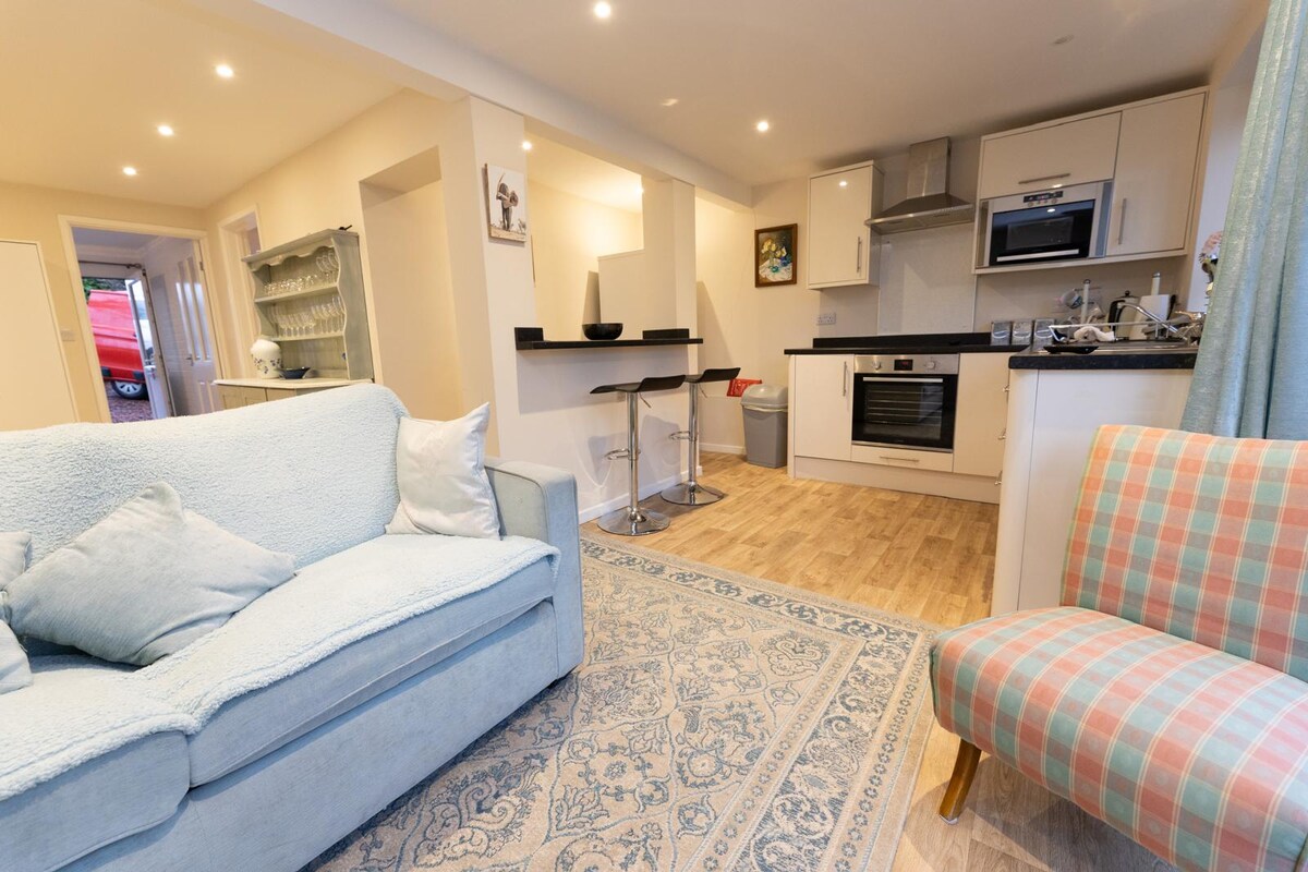 Sala de estar en la planta baja, comedor de la cocina, una estufa de leña para relajarse junto al fuego, solo para uso en invierno. Cocina: armarios a medida, encimera de granito con cocina eléctrica Aga. Una mesa de comedor a medida en un salón comedor de estilo abierto. Escalera de roble hasta el rellano del primer piso, dormitorio principal con cama tamaño king, cabecero acolchado de terciopelo, una gran ventana redonda con vistas increíbles, verdadero lujo. Un baño contemporáneo separado, con ducha sobre bañera, lavabo, inodoro y toallero eléctrico.