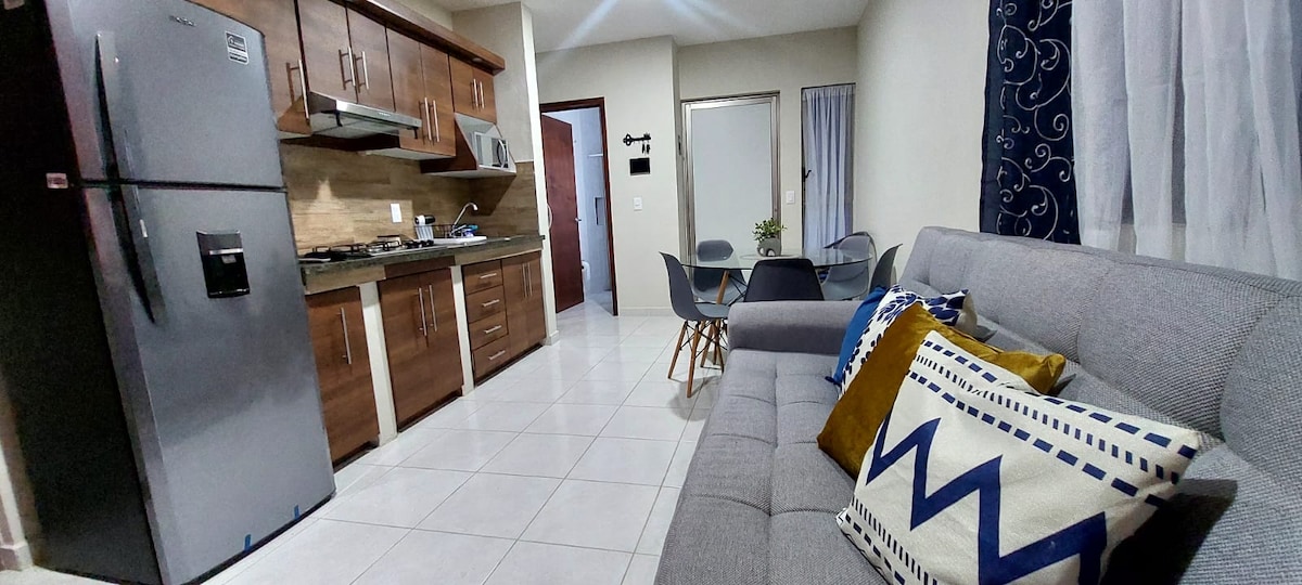 ✨ Un espacio pensado para que te sientas en casa✨ Disfruta de una estancia cómoda en este departamento pensado para que te sientas como en casa. 📌Ubicado en una zona estratégica, tendrás fácil acceso a los principales puntos de la ciudad, restaurantes y servicios. Además, cuenta con cochera 🚗 cerrada y privada para que tu vehículo esté seguro y protegido durante toda tu estancia. ¡Comodidad, ubicación y tranquilidad en un solo lugar!