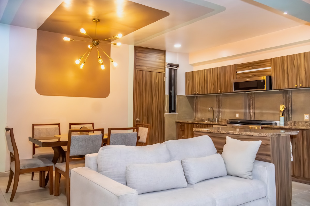 Al hospedarte en este departamento te sentirás en casa, la sala es muy cómoda, cuenta con 4 camas, un área especial para trabajar desde casa, el internet es muy rápido y contamos con lavadora y secadora para que no te preocupes por nada. Tenemos una ubicación estratégica, estamos a cuatro calles de la catedral, puedes llegar caminando o tomar un transporte público. Hay cafeterías muy cerca, gimnasio a la entrada del Residencial, y una mini tienda. Estarás céntrico, seguro y cómodo.