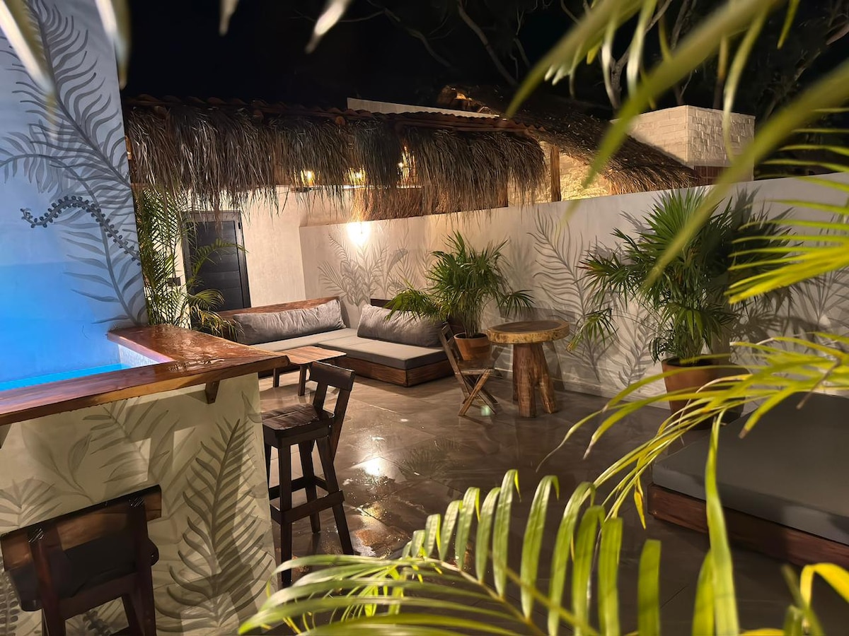 Loft moderno con alberca y cocina en Bacalar