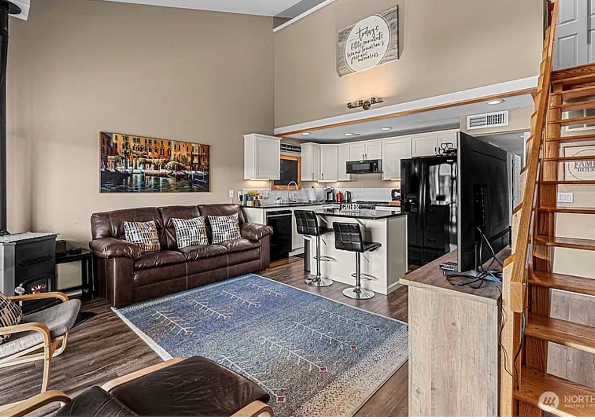 The Cabins at the Farm es el barrio más nuevo y popular de Suncadia, con casas modernas escandinavas. Ubicada en la Reserva Nelson, esta casa se encuentra junto a un arroyo estacional con exposición al oeste. Diseñada para traer el aire libre al interior. Te recibe un caprichoso papel tapiz de abedul, techos abovedados, mucha luz natural y muebles cómodos. El patio trasero es ideal para cenar al aire libre, sentarse alrededor de la chimenea o sumergirse en el jacuzzi. El estudio/habitación con literas es perfecto para tener a tus hijos contigo pero no encima de ti. Nos encanta.
