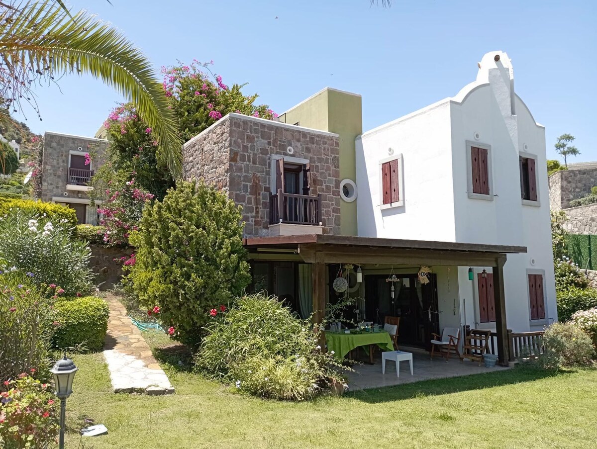 Casa con jardín de 1+1 cerca de la playa y la granja de caballos Gümüşlük