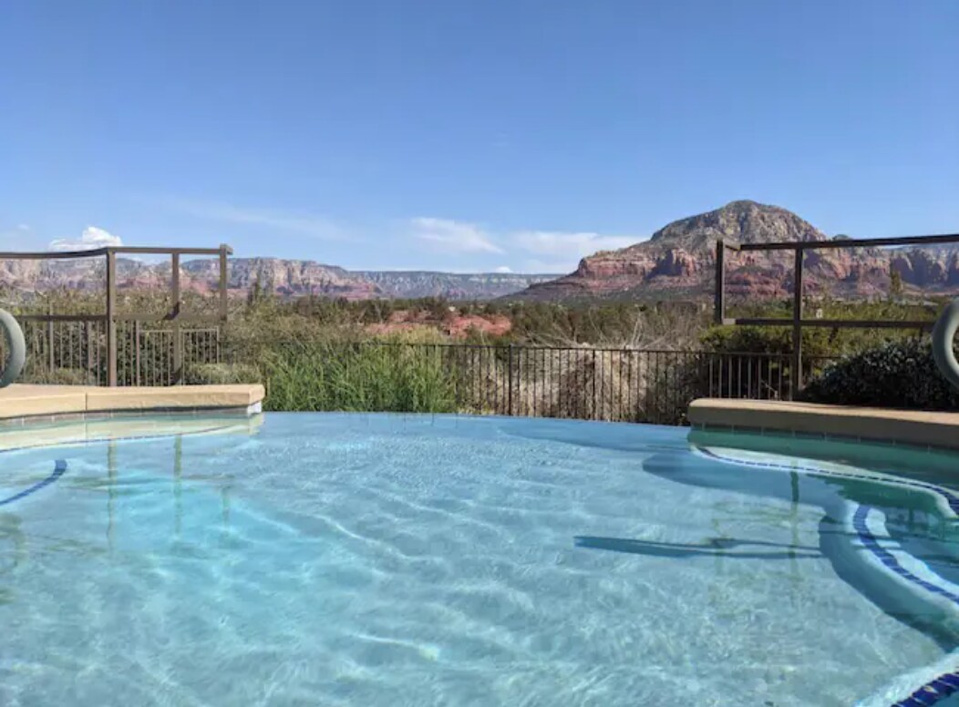 ¡Disfruta de unas vistas inmejorables de las rocas rojas de Sedona en esta acogedora base! Ubicado en un hermoso entorno, nuestro refugio ofrece una experiencia asequible para los huéspedes con impresionantes vistas y encanto del suroeste. Después de caminatas cercanas y aventuras de rock rojo, relájate en nuestras dos piscinas al aire libre, jacuzzi o disfruta de una barbacoa con tus seres queridos. Los entusiastas del fitness apreciarán nuestro gimnasio, mientras que las familias pueden disfrutar del parque infantil y las amplias comodidades.