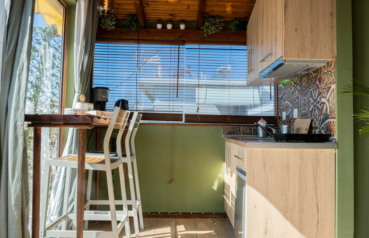 El Loft Apartment está en la zona más hermosa de Tesalónica, en Kalamaria - A 50 m del mar. - A 10 minutos del centro de la ciudad. - A 10 minutos del aeropuerto. A pocos pasos de restaurantes , cafeterías , bares, playa de arena, puerto deportivo, clubes de vela y remo, el apartamento cuenta con: - Una habitación abierta con balcón. - Cocina equipada: un baño moderno. - 1 cama doble: 1 sofá cama doble. - Servicios de bienvenida -Internet de internet de alta velocidad - Estacionamiento gratuito - Televisión inteligente con Netflix - Aire acondicionado
