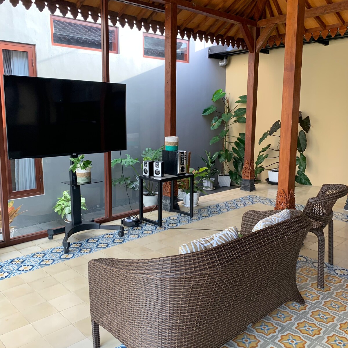Acogedor alojamiento en el centro de Yogyakarta con todos los servicios, adecuado para familias y grupos pequeños. Situado junto a la carretera principal con fácil acceso. Plaza Kidul: 1,2 km Tamansari: 1,1 km. Keraton Yogyakarta: 2,3 km Malioboro: 2,9 km. El alojamiento fue creado con un ambiente hogareño que permite a los huéspedes sentirse como en casa. Hay muchos lugares para tomar fotos para inmortalizar los momentos con familias/ grupos. Hay lugares agradables y acogedores para charlar dentro y fuera de la casa.