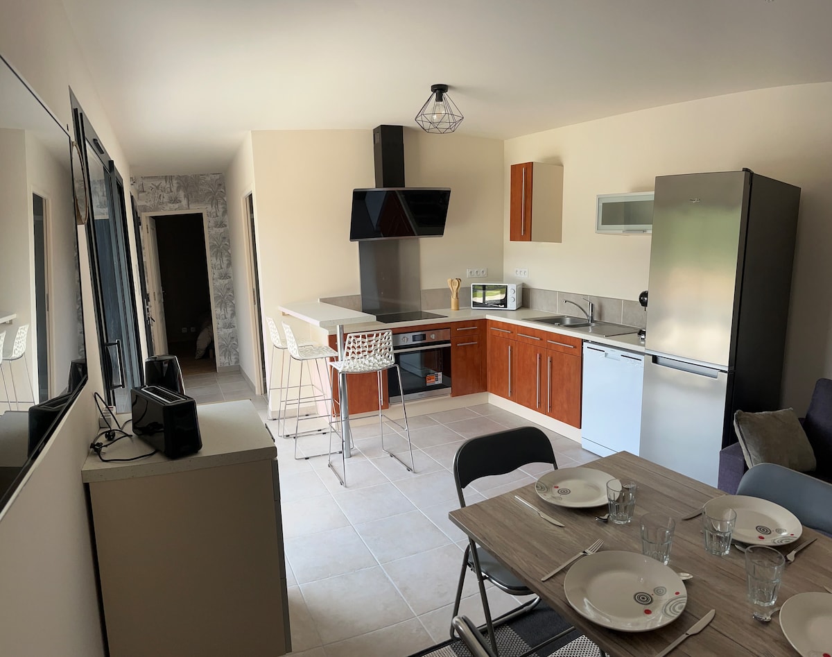 💫 Bienvenue au Rétro Chic’ago ! 💫 Classé Meublé de Tourisme 3 étoiles, l’ambiance fun, rétro et colorée de cet appart’ en duplex de 55m2 (et son parking privé juste devant), vous plongera dans un univers unique ! En déplacement pro, en vacances, seul, en couple ou en famille, vous serez séduits par la décoration atypique du Rétro Chic’ago ! Ses principales qualités : - Accès gratuit à NETFLIX, CANAL+ et DISNEY+🍿 - CHAMBRE spacieuse et confortable 🛏️ - CUISINE très bien équipée