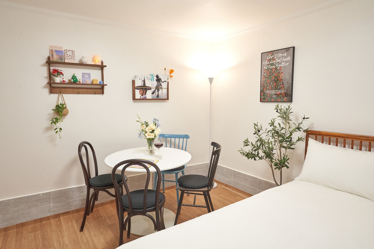 Hola, este es un espacio situado en la calle de muebles antiguos en Bogwang-dong, Itaewon, Seúl. Está a 5 minutos a pie de la estación de Itaewon, y hay una tienda de comestibles a un minuto. Intenté hacer que la casa antigua fuera acogedora y cómoda. Es una zona residencial, por lo que es muy tranquila, por lo que no se permite hacer mucho ruido en el alojamiento. Queremos recordarte que las fiestas o reuniones que puedan causar un gran ruido no son adecuadas para este espacio. Este espacio está configurado para alojar a una o dos personas. Pensé en aquellos que quieren descansar y divertirse en un espacio nuevo o quieren hacer trabajo personal. *El alojamiento tiene una pequeña sala de estar, 2 habitaciones (dormitorio/habitación para música, películas, libros, trabajo, comidas, etc.) y un baño. < Precauciones para el alojamiento > - Nuestro alojamiento en una habitación pequeña en Itaewon es un alojamiento tranquilo. Por lo tanto, solo pueden entrar los huéspedes que hayan reservado debido a un ambiente agradable y por cuestiones de seguridad. Ten en cuenta que, si no cumples con esto, se te aplicará una penalización. (Pena: infracción de las reglas de uso incurridas y medidas de desalojo)