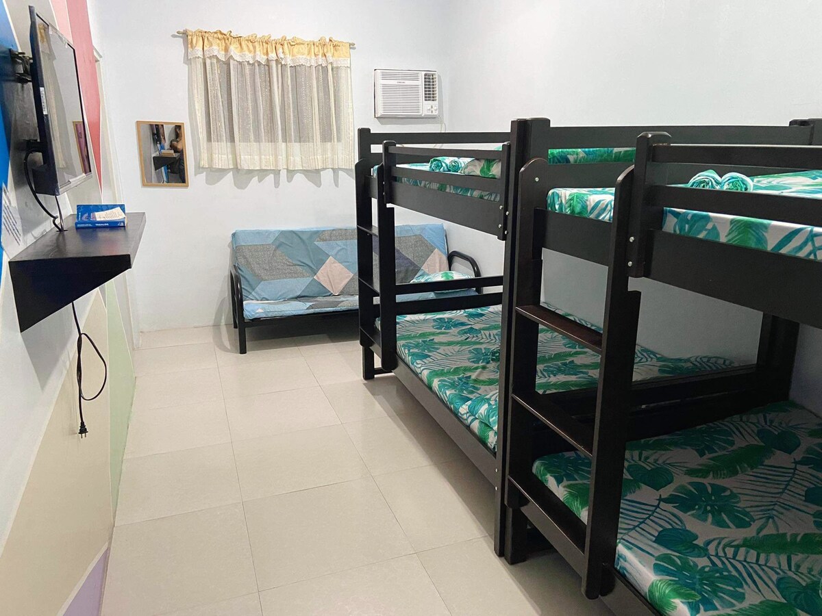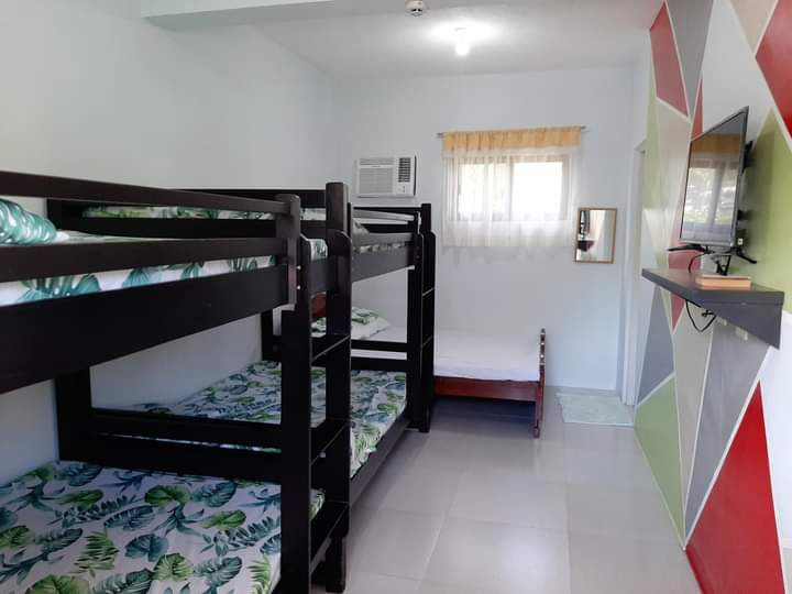 1 habitación con aire acondicionado y 5 camas de matrimonio. Cuenta con baño privado y cocina con utensilios de cocina completos (Refrigerador, gas, cocina de gas, olla grande, sartén, cuchara y tenedor) Servicios compartidos: zona de piscina y playa Estacionamiento comedor en el baño a la parrilla Actividad (no incluida en la tarifa publicada) Isla de los Calones Isla de Camara Anawangin Cove Talisayen Cove Nagsasa Cove