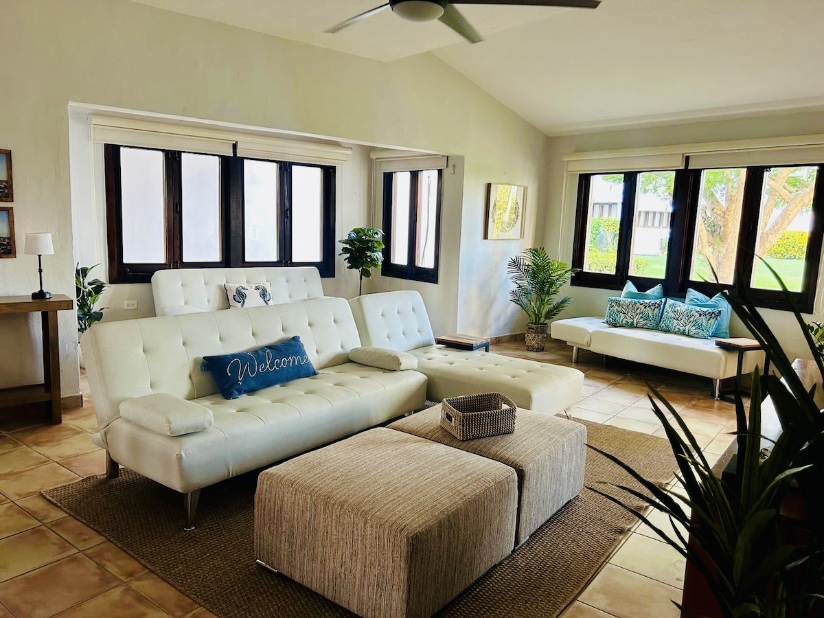 ¡EXCELENTES RESEÑAS! ¡SUPER-HOST! Mínimo 3 noches OFERTAS DE ÚLTIMA HORA PARA OBTENER FECHAS DISPONIBLES Reserva 30 noches o más y ahorra solo por solicitud. ¡Esta villa moderna y totalmente equipada, ubicada directamente en el campo de golf del océano Río Mar con magníficas VISTAS! Consulta todos los detalles en la descripción y las comodidades de nuestra villa. Ventanas nuevas, ajustables para abrir según tus preferencias. Nueva unidad de aire acondicionado de gran tamaño/control remoto, TV INTELIGENTE y más. ¡LIMPIO! ¡Reseñas recientes!