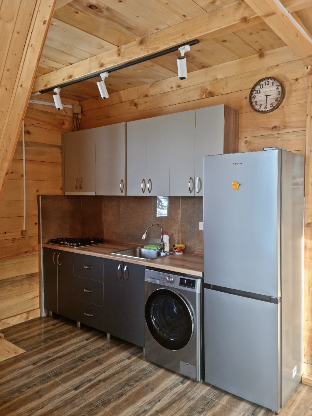 La casa de campo «Sabri» se encuentra en la estación de Goderdzi, cerca del telesilla central. No necesitas transporte adicional para desplazarte. El interior de la casa está equipado con todos los suministros que necesitas: tres dormitorios, estufa de leña, calefacción eléctrica en todas las habitaciones, cocina totalmente equipada. TV por Internet. La casa es de madera y está rodeada de metal especial para el calor. El agua es especial y fluye desde el suelo. Todas las habitaciones son cómodas, y hay 6 personas y pueden ser más.