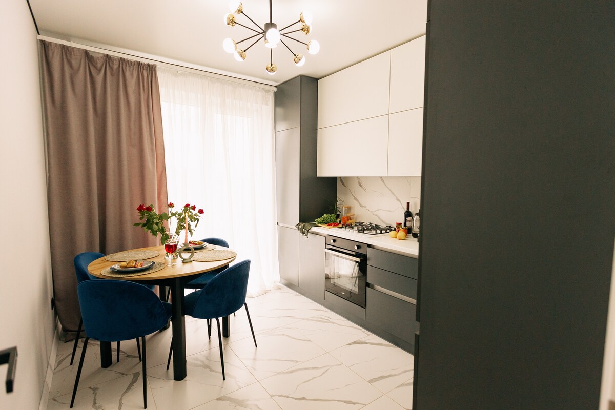 ¡Si nos eliges, eliges un alto nivel de limpieza y comodidad! El departamento en el nuevo edificio se encuentra cerca del centro (15 minutos a pie o 2 minutos en coche) con dos dormitorios separados y una cocina de sala de estar. Cuidando tu sueño, abastecimos lugares para dormir con buenos colchones ortopédicos y ropa de cama de calidad. La cocina tiene un gran juego de platos, incluso adecuado para estancias largas. Estacionamiento para autos en el patio de la casa, área cerrada con videovigilancia. Ofrecemos informes de documentos para viajes de negocios. FPU