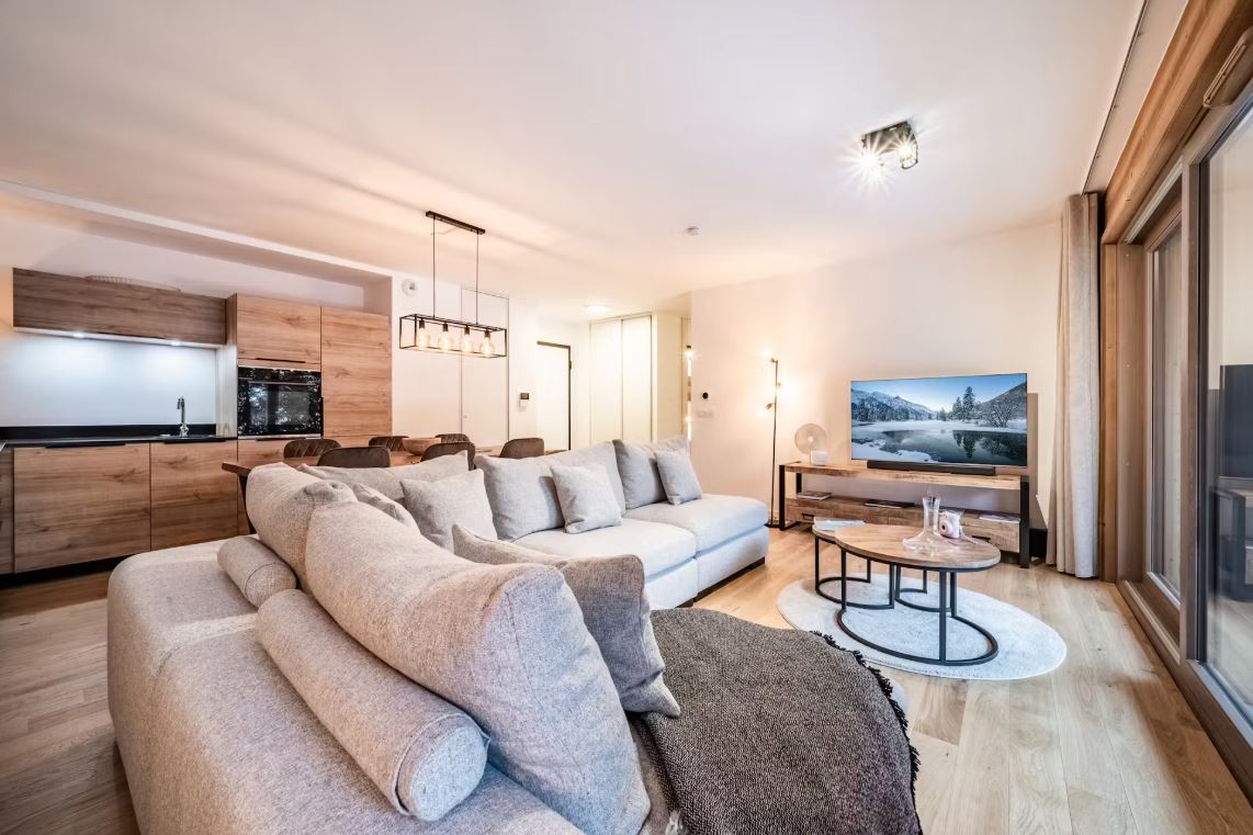 Los lujosos chalets de 200 metros cuadrados están amueblados con gran atención al detalle. El mobiliario, fabricado con materiales de la más alta calidad, combina un diseño moderno con un ambiente alpino de bienestar. Cada chalet se extiende en tres niveles con dos terrazas y un balcón y tiene capacidad para 8 a 10 personas. Desde cada planta, se puede disfrutar de vistas panorámicas de las montañas tirolesas. Los cuatro dormitorios tienen cada uno un baño separado. El salón-comedor compartido con una cocina abierta totalmente equipada