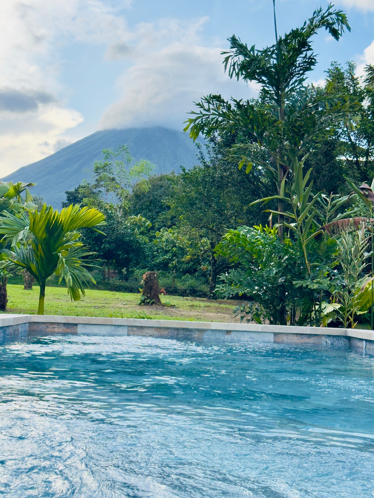 Un hospedaje para escapar de la rutina y conectar con la naturaleza, tiene un diseño moderno con una cálida decoración, rodeado de naturaleza donde podrás observar muchas aves, una linda vista al volcán, balcón, terraza, una refrescante piscina y jacuzzi privado. Un lugar ideal para parejas, amigos o para que puedas teletrabajar tranquilamente. Ubicados estratégicamente cerca de todas las actividades principales y a tan solo 2.5 km del centro de La Fortuna y a 1 km de La catarata La Fortuna.