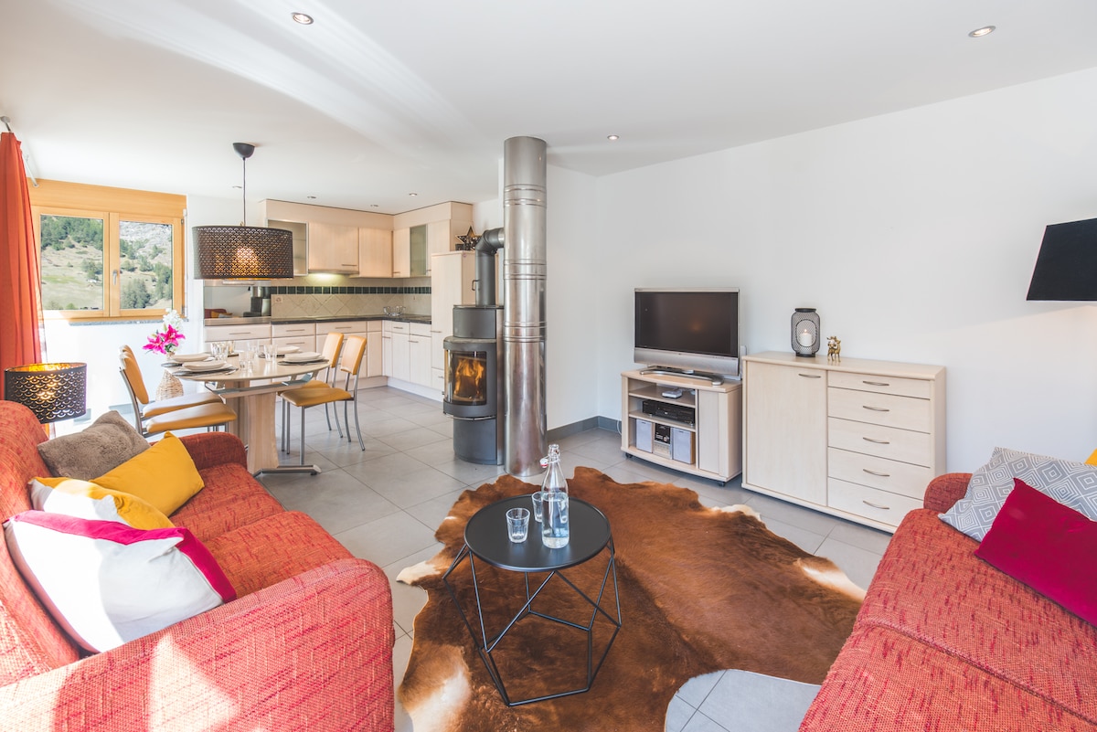 This luxurious 48 m2 apartment+19m2 balcony is in the center of town, 2 mins from a ski lift, 5 mins from the main street. It features a fully equipped kitchen open onto a spacious living area complete with fireplace and large outdoor terrace. The modern bathroom has both a spa bathtub with jacuzzi and separate shower with rain-head. We are also owners of the FLYZermatt paragliding business. We offer a 10 % discount on flights for guests. SCAM ALERT! THIS LISTING IS ONLY AVAILABLE ON AIRBNB!!