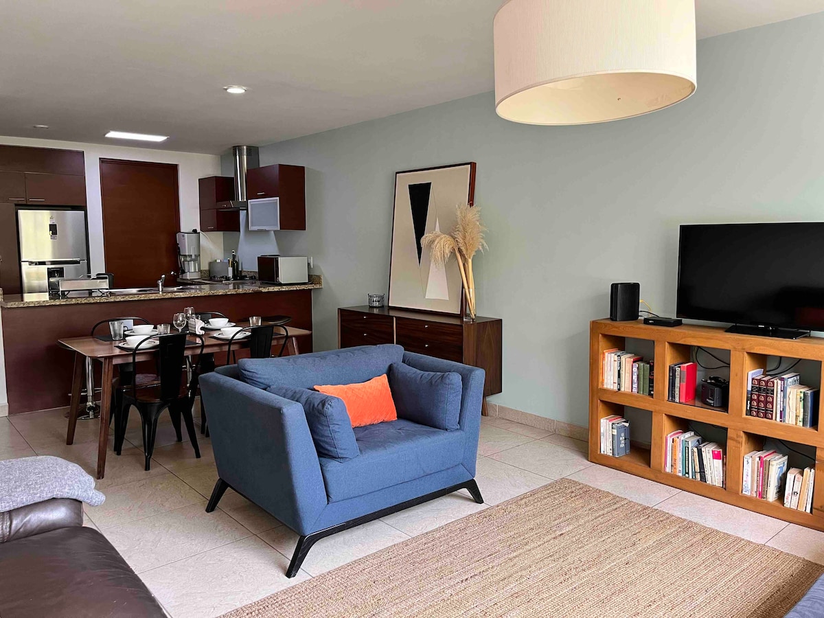 With its prime location near Reforma Avenue and its well-designed interior and terrace, this one-bedroom apartment offers an exceptional living experience in the heart of Mexico City. The living room opens up to the terrace with floor to ceiling windows, allowing residents to enjoy the impressive skyline views of Mexico City while cooling down with the AC /Smart TV see all our listings in xolo stays Must submit to enter the property: - Number of guests - Must sign our internal agreement (
