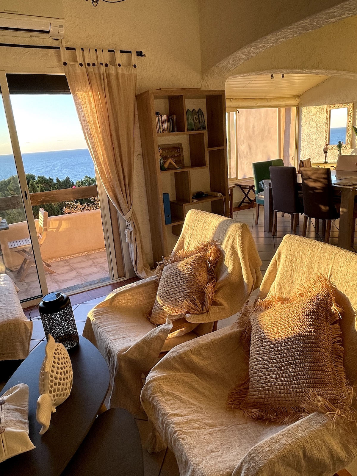 ideal para pasar unas vacaciones. Cálida bienvenida, lugar mágico, estudio nuevo y con aire acondicionado, con cocina totalmente equipada, terraza, lado del patio, tumbonas en la playa, aparcamiento, a 25 minutos del aeropuerto. Actividades , restaurante bar en el lugar, todos los comercios a 500 m . Paseo a las Islas Sanguinarias a solo 1 hora. Las Calas de Piana están a 1 h 30 m máximo. Salida en barco todos los días desde el puerto de Porticcio a la famosa Reserva de Scandola , paseos a pie .