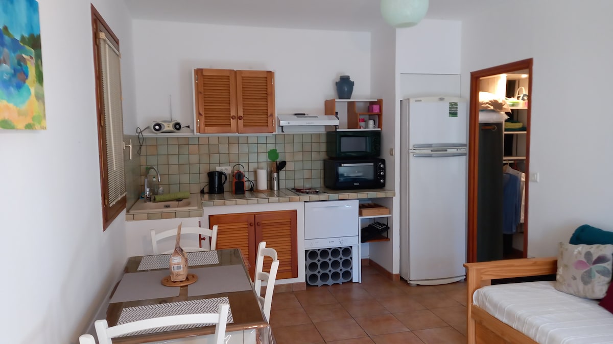 Apartamento de 40 m2 tranquilo y agradable en la planta baja de una villa en el corazón del maquis, en un pueblo de montaña - a 20 minutos (es decir, 15 km por carretera de montaña) o más si se detiene a admirar el panorama, las primeras playas y las primeras tiendas en coche Acceso directo a muchas rutas de senderismo A 5 minutos a pie del pueblo (sin comercios) Ideal para moteros, excursionistas, caminantes y amantes de los animales y la naturaleza Apreciado por los viajeros que buscan paz y tranquilidad
