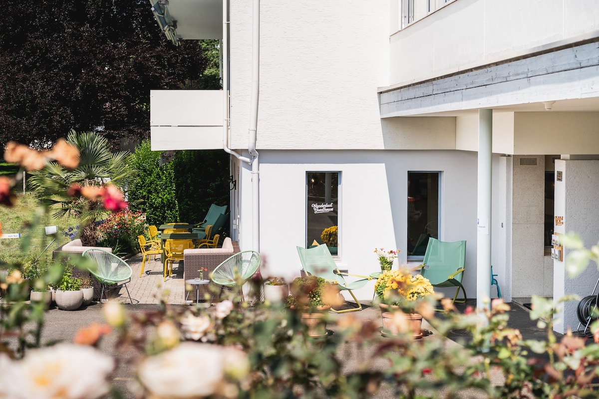 La casa de huéspedes para mujeres de Josephine solo se puede reservar para mujeres. La casa de huéspedes tiene una ubicación muy céntrica en Zúrich, a solo 800 m de la estación de tren principal. Nuestras elegantes habitaciones se pueden reservar para estancias cortas y largas de hasta 6 meses. Disfruta de la inspiradora comunidad, así como de la hermosa terraza en la azotea con cocina compartida: ¡tu acogedora casa para el tiempo te está esperando! El desayuno buffet vegetariano está incluido en el precio.